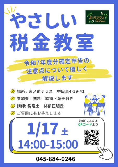 今年の申告、ひとりで悩まなで、みんなで聞きましょう、税のはなし。