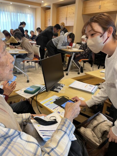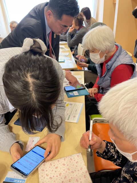 沢山の参加者でしたが、黒澤志津乃さんのひとり暮らしのお話から、横浜市職員さん、学生ボランティア、スマホの先生などにもお力を借りて、ひとりひとり登録を完了しました