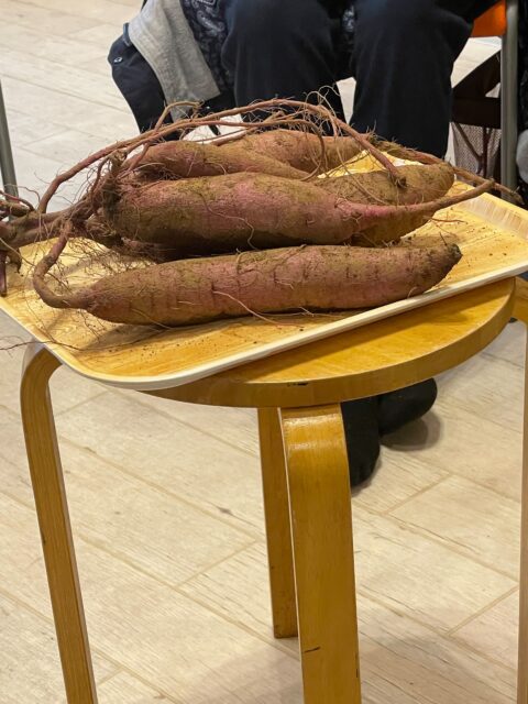 昨日子どもたちと掘ったさつまいもを道具に思い出を語りました
