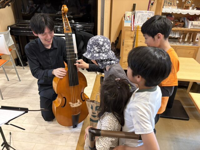 質問コーナーではお子さんからも質問が出て、ひとつひとつ丁寧にお答えいただき、終演後は楽器にも触れさせていただき子どもたちも、一緒にいた大学生も大感激でした