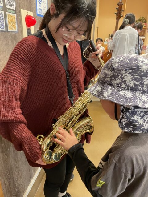 みやまえ塾でボランティアをしてくれている大学生、落合釉菜さんも一緒にアルトサックスで参加してくださり、和気あいあいとしたコンサートとなりました