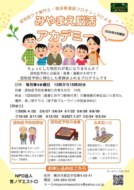 認知症予防だけに特化した「みやまえ脳活アカデミー」が開校します