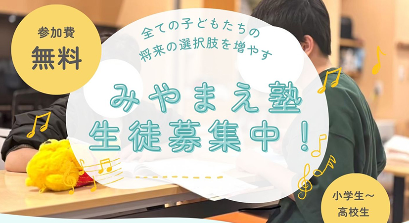 みやまえ塾は「全ての子ども達の将来の選択肢を増やす」ことをモットーに、学生ボランティアを中心に無料の個別指導型学習支援をおこなっています。